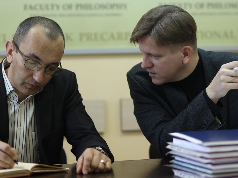 На заході були присутні студенти 2, 3, 4 курсів філософського факультету. Завідувач кафедри філософії, соціології та релігієзнавства кандидат філософських наук доцент Дойчик М. В., відзначивши важливу роль у навчальному процесі вивчення першоджерел з філософських дисциплін, представив присутнім упорядників виданої хрестоматії з соціальної філософії.